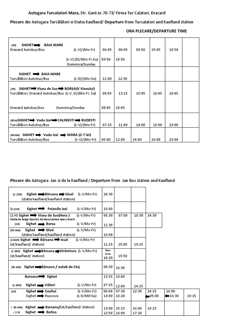 Orar Microbuze Dracard Borsa Viseu De Sus Sighetu Marmatiei Ocna