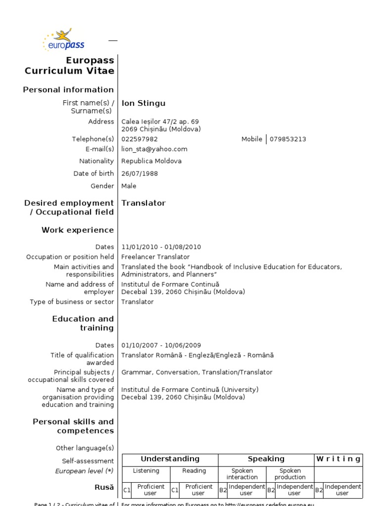 Cv Sorina Martin Europass Engleza