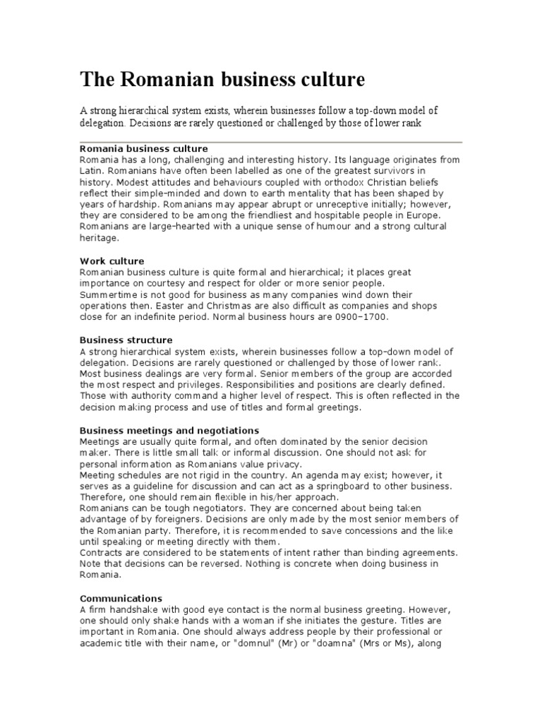 Business Culture In Romania Business Deeds